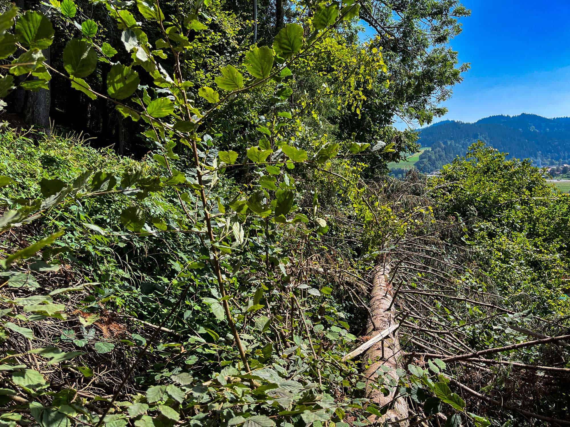 Die gefallene Weisstanne bedeutet für die beiden viel zusätzliche Arbeit: Genau zu der Zeit, wenn Hochsaison auf dem Hof ist. Die Zeit vom Heuen, Ernten und Verarbeiten. Alle die zuhause einen Garten oder eine Balkonbepflanzung haben, wissen was bei der Natur im Sommer los ist. Der Garten läuft bei Susanne übrigens auch noch nebenher.